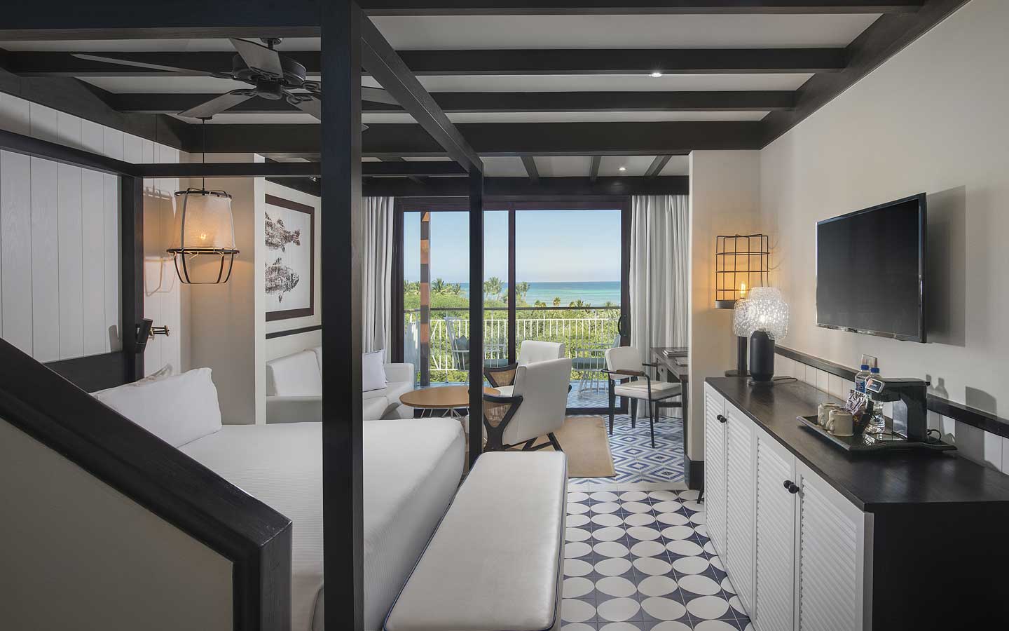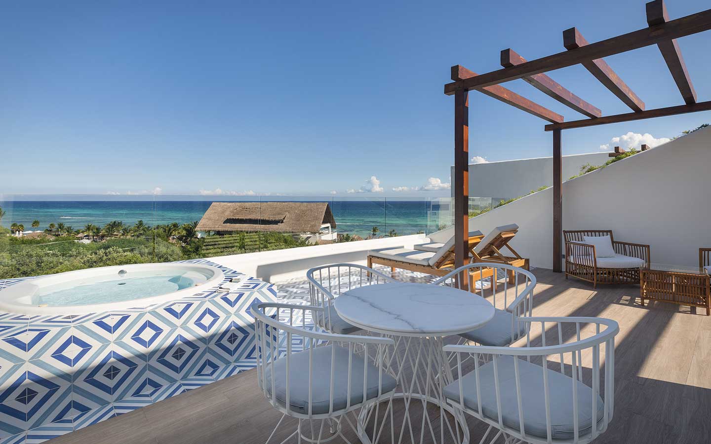 Exclusive suite designed on two levels to provide a privileged ocean view from the private rooftop whirlpool. In addition, it is equipped with a separate bedroom and a spacious living room with a sitting area. Maximum capacity 3 people.